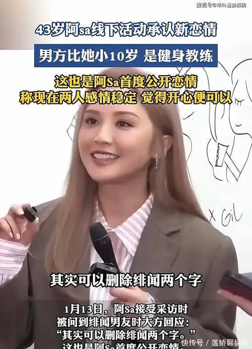 一、从“隐婚”到“敢言”:阿Sa的恋爱进阶之路阿Sa此次官宣,之所以能让众多人直呼“过瘾”,是因为与她以往的感情轨迹相比,此次的画风着实大相径庭。1 月 13 日,阿 Sa 出席一场公开活动,现场被媒体追问感情相关问题。事情的起因是此前阿 Sa 过生日的合影照片曝光,一名男子站在合影的 C 位,外界就此猜测该男子是她的绯闻男友。面对媒体的追问,阿 Sa 没有丝毫扭捏回避,直接坦然回应:“你们可以删去绯闻两个字”。这句直白的回应,等同于公开认爱,瞬间点燃现场气氛。阿 Sa 还补充表示,她和对方的感情十分稳定,两人相处开心就是最好的状态。随后媒体又打趣追问,她近期的变化是否是因为恋爱导致的 “恋爱肥”,阿 Sa 脸上带着藏不住的笑意,甜蜜回应:“好幸福啦,胖不胖就不说啦”。